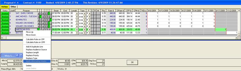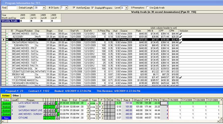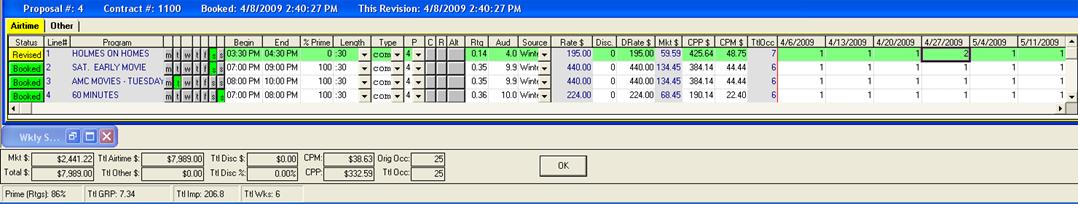Add a couple of spots to a program in a week that has yet to air. Scroll over to where the date appears – dates appear as the first Monday of the week.