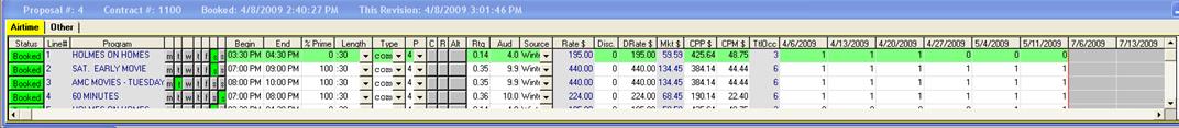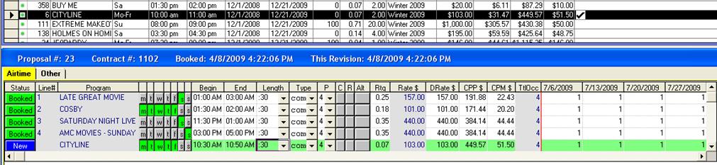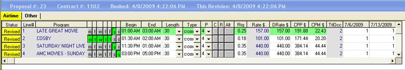 Click on the day part where the spot will be added – both lines will have their status changed from Booked to Revised