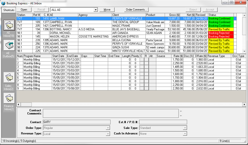 Even when a contract is revised and rebooked, it will go through the same process as when it’s a new order. It is sent immediately to your Outbox, and will then need to be approved by your Sales manager, and then by Traffic. Once it has been completely confirmed, the contract will come back to you, and will appear in your Inbox.
