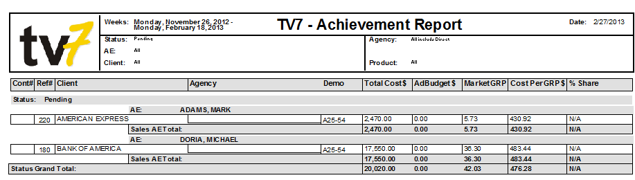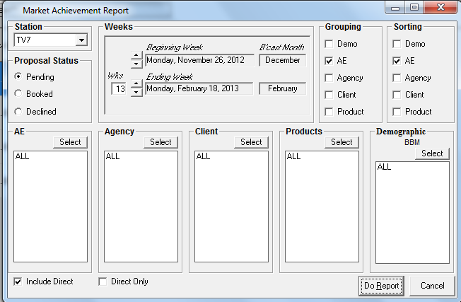 •Select the Account Executives, agencies, clients, products and demographics for inclusion in the report