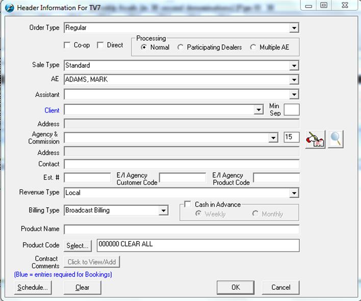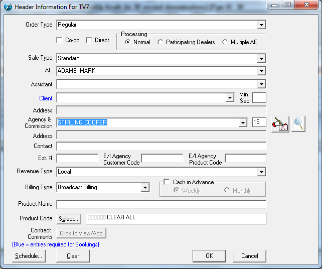 Billing – choose whether it is to be billed based on Broadcast or Calendar