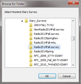 Browse and select the folder containing the new files from Numeris. Press OK.
