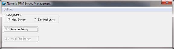 To view existing surveys, select the Existing Survey option. Use the dropdown to select a survey.
