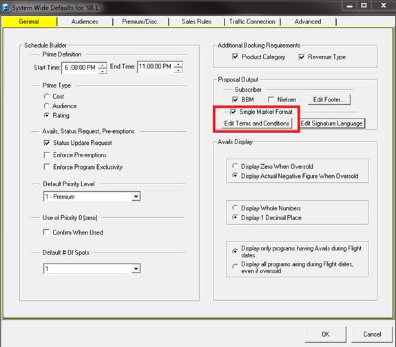 To ensure that the Terms and Conditions print on the proposals, the Account Executives will need to set that option in their Printing Options (for multi-market stations)