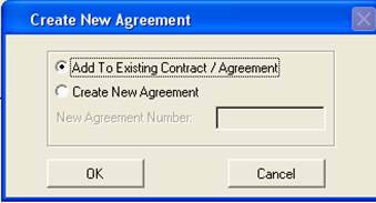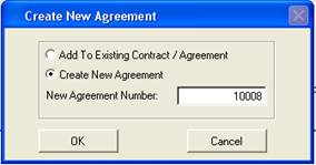 The New Agreement Number field will become active defaulting to the next available agreement number