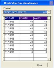 The screen below indicates that “Live with Regis and Kelly” is the program that airs before “Cityline”; therefore apply one pre-break to this program. Modify Break #6 to define the time being allocated from Regis & Kelly to Cityline.