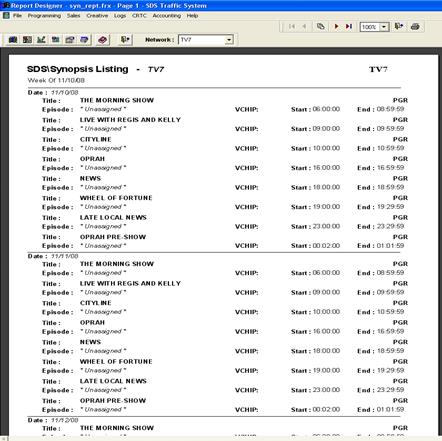 This report displays all of the programs in the Traffic module that have been registered as close captioned. The CRTC files must be created for the specific dates in order to generate this report. Click on Programming, Program Reports and select Close Caption Reports. The following screen will appear. Select the number of days that need to be included in this report, as well as the dates from the drop down calendar. If there isn’t any data for these dates, you will receive an error message indicating that the CRTC Logs do not exist for that day and that the client data does not exist. Once the correct dates have been selected, click on Process Report.