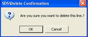 If deleting a line, the following message will appear. Click Ok to continue, or Cancel to cancel the action