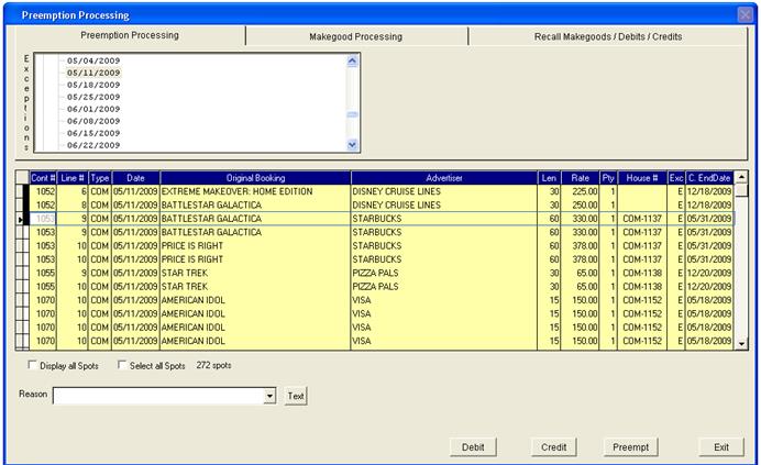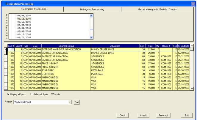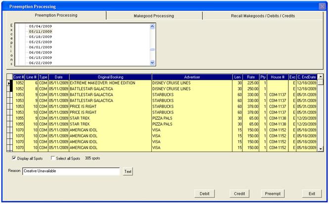 Spots can be moved with ease from exceptions (bumps) to any valid day, from one day to another, or bumped directly into exceptions.