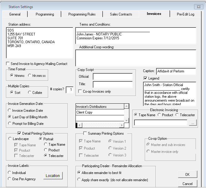 Co-Op Option – Master and Sub Invoices or Master invoice only – This allows for different options when printing out Co-op invoices. You can simply print the main invoice only which shows all pieces of creative on one page (Master Invoice only) and then the scripts OR you can print the master invoice and then each piece of creative on their own invoice and the scripts that go along with them (Master and sub invoices).