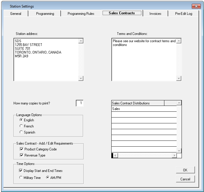 Invoice Distributions - for each copy of the invoice a different distributor can be set to receive a copy. Example: Agency copy, Distributor copy. This becomes active if the number is greater than 1