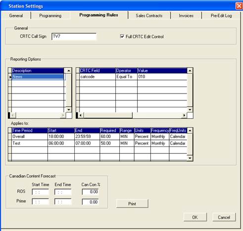 Canadian Content Forecast – the settings entered into these fields will track Canadian Content throughout the system based on these settings.