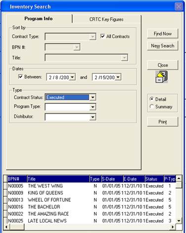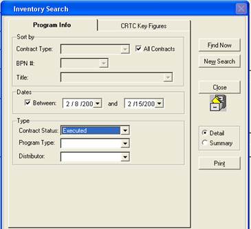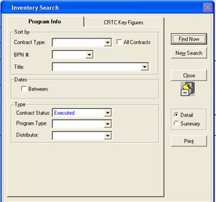 This tab gives the ability to search by Contract type, BPN#, or title of the program.