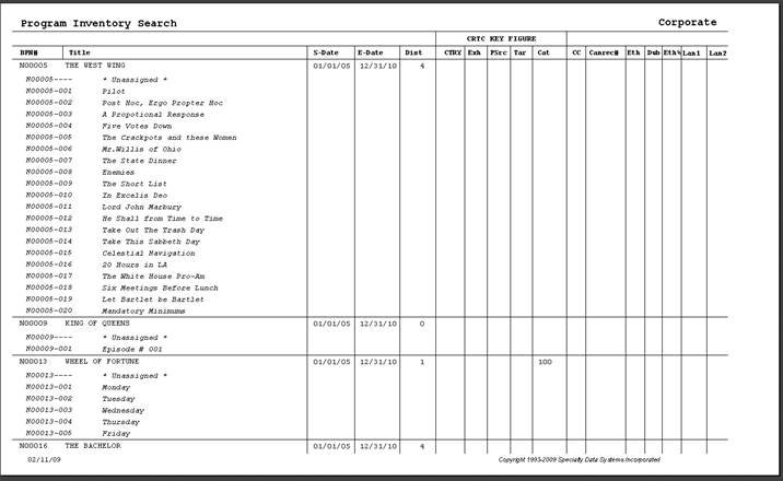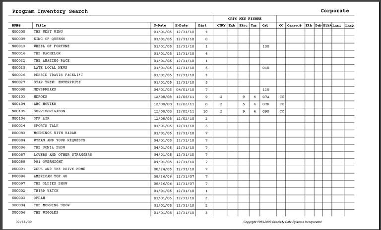 From the Main Menu select Program Inventory, Corporate Acquisitions or Network Program Editing (Corporate will search through all Station for the program, Network will search only through the current network)