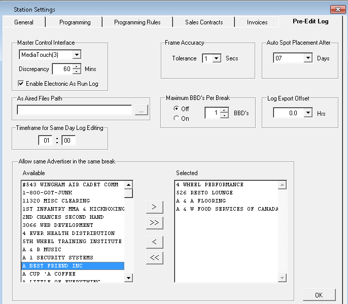 Forced Exception Placement – this allows the user to enter in the date and times for spots, instead of manually entering them on the post edit log. This was initially designed for television and secondary events that aired (for example Lottery Crawls).
